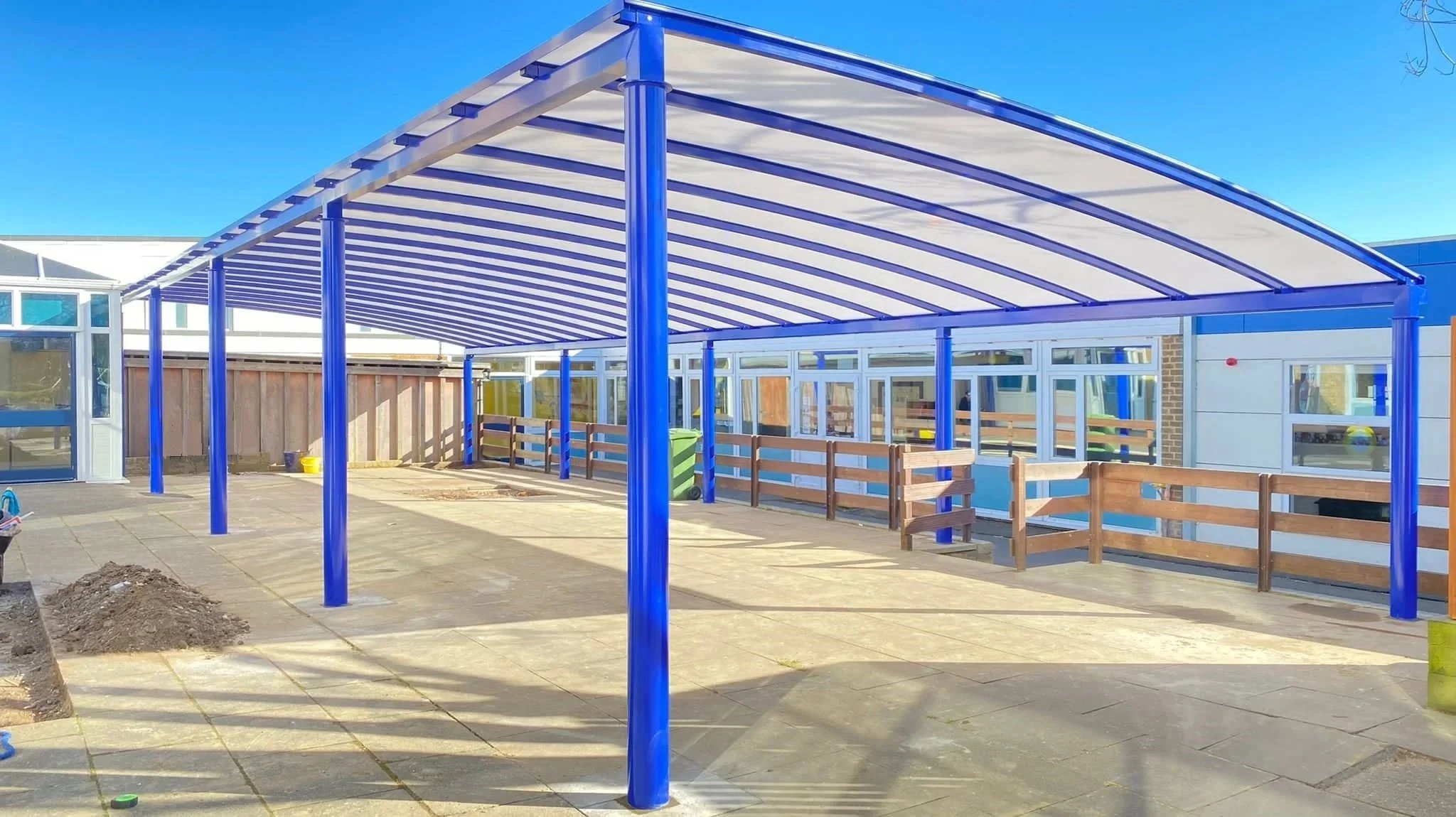 With over 20 years of experience Premier Limited Outdoor Shelters are one of the leading manufacturers and installers of all designs and styles of outdoor shelters, including canopies for walkways, canopies for doorways, covered courtyards, outdoor eating areas and classrooms, cycle storage, pram/buggy shelters and more